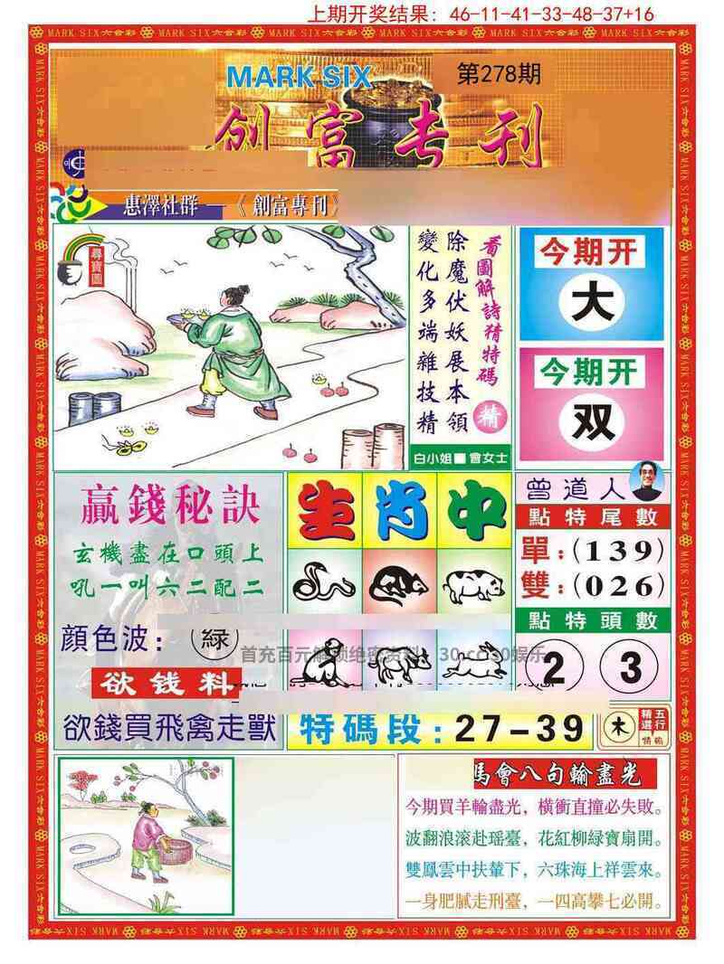 275期:正版创富网:三心两意出厅招,单数有特可考虑